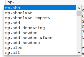 Jupyter notebook also has a simple function for listing available functions: type np. and press the tab key, which will give a list of functions.
